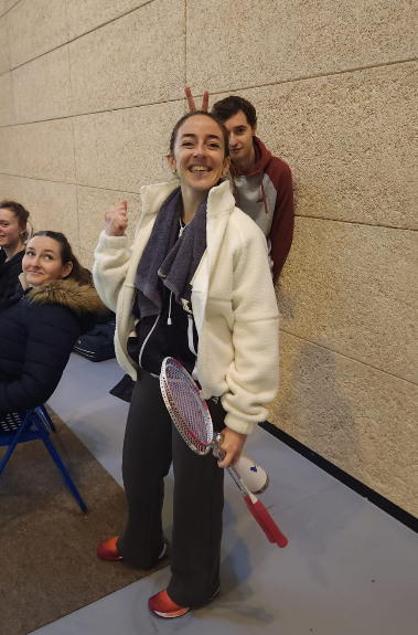 Elise pendant ce temps entame bien son second set, mais son adversaire aussi. Les deux joueuses nous offrent de superbes points et se battent sans relâche, en dégagé, au filet, en coup droit, en revers, chaque point doit se mériter pour être remporté ! Le score défile, Elise prend quelques points d’avance sur une belle série, à laquelle son adversaire répond immédiatement, et nous voilà à 19 égal, puis 20-19 pour un volant de match. Le point dure, un duel de dégagés fait place à un duel d’amortis, le volant touche la bande avant d’être sauvé, l’attaque alterne entre l’une et l’autre, les spectateurs retiennent leur souffle (sauf Baptiste qui n’avait pas suivi le score), mais après moult péripéties, c’est bien Elise qui fini par remporter le point, le set, et le match ! 3-3.