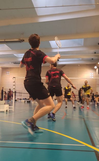 La victoire est assurée, les doubles ne seront que du bonus, avec deux matchs qui s’annoncent disputés. Mathieu, Clément, Anaïs et Souris entament les dernières confrontations du jour, avec des deux côté un 1er set serré dans deux matchs qui paraissent assez équilibrés. Les scores avancent sans qu’aucune paire ne se décide à se détacher, et le score final sera de 21-19 dans les deux matchs. Un dénouement heureux pour Mathieu et Clément qui remportent leur set, mais malheureux pour Souris et Anaïs qui s’inclinent.