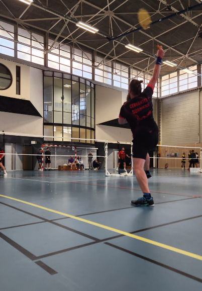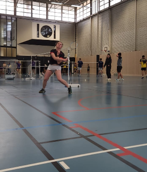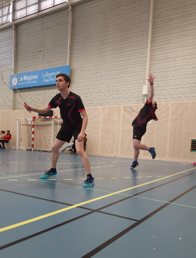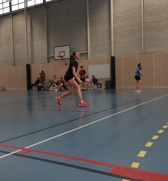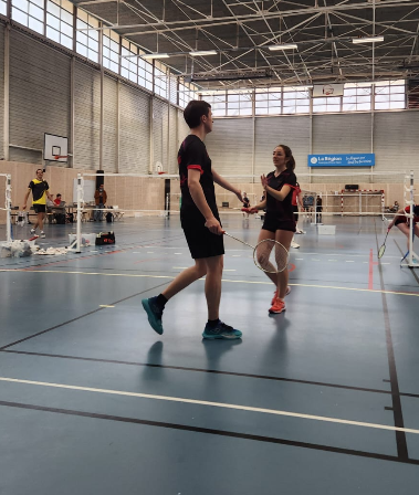 Pour Blandine et Clément, 2ème set est plus tendu que le 1er, notre adversaire se met à vociférer pour se motiver (ou pour nous faire peur peut-être), et le jeu se resserre. Les points défilent et les spectateurs s’entassent devant le dernier match de la journée. Le reste du gymnase est vide et le rangement est déjà bien entamé, alors que le 2ème set se rapproche de sa conclusion. Les sorbérans sont en forme et leur duo fonctionne à merveille, mais la paire adverse se bat vaillamment et nous fait douter. 20-19, nous sommes les premiers à 20, un volant de set, de match et de rencontre. Après un nouveau point très disputé, la rotation s’enclenche, Blandine prend le filet agressivement mais Clément se fait contrer et se retrouve à 3m du volant, ce qui n’est apparemment pas un problème, il suffit de réaliser un slice croisé main basse depuis le couloir du fond. Après un suspense de quelques secondes, ce coup improbable passe le filet et tombe dans le couloir adverse, venant sceller une victoire durement gagnée. 5-3 face aux seconds, un résultat inespéré !